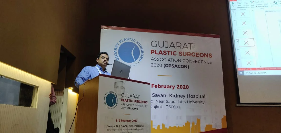 Gujarat Plastic Surgeon Association Meeting in 2020 was held in Rajkot Savani Kidney Institue Dr. Ashutosh was invited as faculty and he delivered lecture on cosmetic procedures for plastic surgeon.